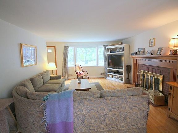 On a breathtaking, level acre lot, this charming home is surrounded by mature tall trees, private oasis with fenced inground pool, patio, perfect for entertaining and play! classy living room with pretty fireplace & picture window, bright, updated kitchen with dining area overlooking the expansive yard/ pool/ gardens. 3 spacious bedrooms, updated bath, pretty hardwood floors, new HWH, roof- 5 yrs, gas heat system- 4 yrs, updated plumbing, lower level with finished den/office. In an area of more expansive homes with great potential for expansion in the back, up and in basement level or possibly reconfigure this spectacular acre lot with a huge frontage. a winner!