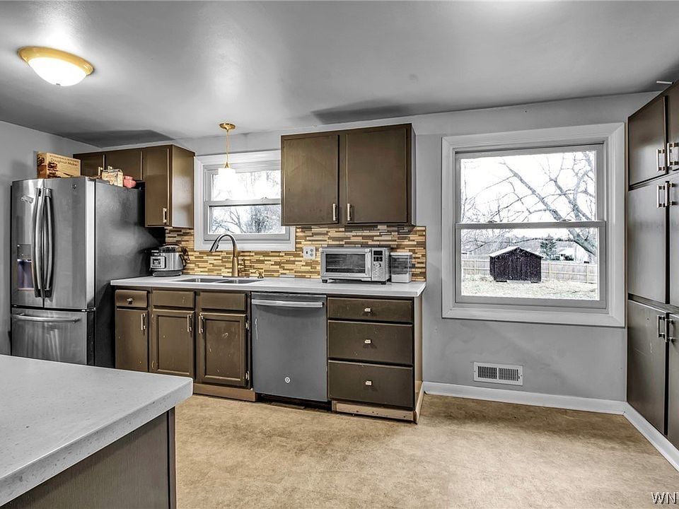 Welcome to 100 Winona!! This all brick ranch consists of 1380 square feet with 3 bedrooms & 1 full bathroom. Large living room has hardwood floors & is open to the kitchen! Beautiful white quartz countertops with stainless steel sink & faucet. Detailed backsplash & coffee bar! All appliances are included. Spacious breakfast bar can fit 4 stools comfortably! Formal dining room is off the kitchen with views of the backyard. The owner's suite can fit a king size bed & has a good size closet. Full bathroom was recently updated with all new finishes. Bedrooms 2 & 3 have big windows & more hardwood floors. The basement here is partially finished & has recessed lighting! Laundry is in the basement, washer & dryer included as well. Attached 1.5 car garage has so much room for storage. Lot is almost half an acre (.49/acre) Fully fenced backyard (2019) with swing set & shed! HWT is from 2019 & the roof is only about 10 years old. Iroquois Schools. Very easy to hop on the 400 to commute to work. Close to all amenities on Transit Road. Showings begin immediately! All offers will be due Tuesday 1/18 at 12/noon. 2022-02-07