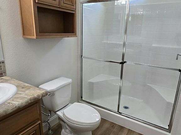 Useful walking closetStainless steel appliancesShower enclosureCarpet in bedroomsVinyl flooringWall to wall closets