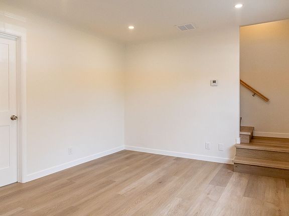 Bedrooms: Three large bedrooms, one downstairs and two upstairs facing backyard space, large double-pane windows, updated designer lighting, flooring, entry doors, trims and all hardware. Great closet space in each bedrooms.