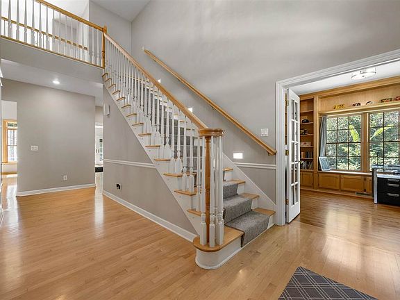 Formal dining roomSun roomCustom book shelvesQuartz countertopsGrand entranceMother in law suiteNewly stained sprawling deck