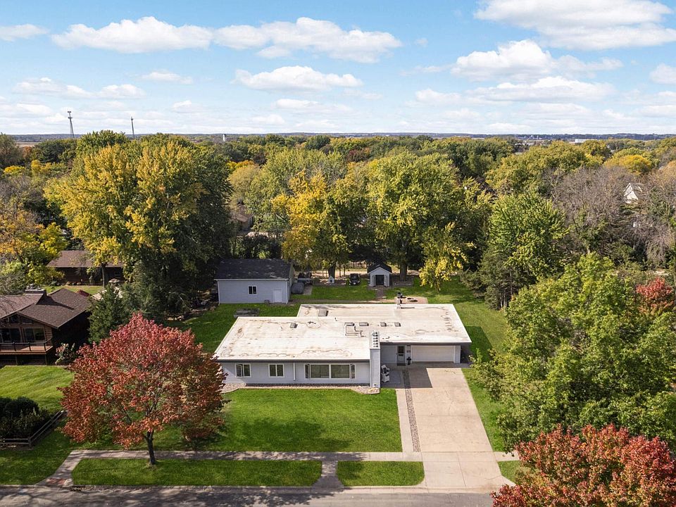 Welcome to this beautifully updated 4-bedroom, 2-bathroom, 6-car garage home in Farmington, MN, set on an expansive double lot over 0.5 acres. This property blends modern upgrades with functional living spaces and all living facilities on one level! The 2019 remodeled open-concept kitchen features granite countertops, a large center island, soft-close cabinetry, stainless steel appliances, heated tile flooring, a vented range hood, and a convenient coffee bar. The living room is highlighted by a cozy wood-burning fireplace with a marble surround, recessed lighting, and new carpet (2022). Large double-paned windows, double doors to the backyard, and six skylights fill the home with natural light. Enjoy two heated garages—one attached with a private workshop, and a detached 1,000+ square- foot garage (2021) with 10-foot doors, a new cement apron, and extra parking space. Outdoor areas include a newly added paver patio with a firepit, a concrete backyard patio, and a fully insulated she-shed with heat and AC for storage or creative space. The primary suite exudes luxury with its wood-burning fireplace and an en-suite bathroom featuring a jetted tub with shower, and heated tile floors. All four generously sized bedrooms are on the main level. The additional full bathroom is also updated with a double sink and separate tub and shower. Additional updates include a new roof, siding, and gutters (2021), a HVAC system (2017), an on-demand water heater, and a water purification and softener system for added comfort. Conveniently located near Farmington Elementary, parks, and local amenities, this home is truly move-in ready. Don’t miss out—schedule your tour today!