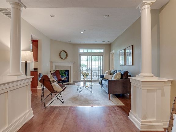 Experience refined living in this sophisticated first-floor corner unit, newly painted and meticulously upgraded. The open and elegant living area includes a wet bar, wine cabinet, wainscoting, and crown molding in the dining room. Relax by the gas fireplace with its graceful mantel and step out to your private patio. The sunlit kitchen is connected to a charming breakfast room. Both bedrooms feature private en suites. Enjoy two parking spaces and a spacious storage unit in the underground, climate-controlled garage. Perfectly situated near all the conveniences of Bedford, Burlington, and Routes 3 and 128 for effortless accessibility.
