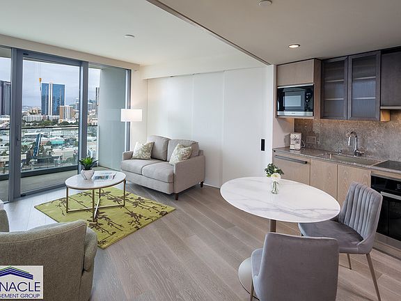 Highly desirable 1 bdr/1 bth unit in newer luxury bldg, Koula at Ward Village. The design integrates natural textures with the emphasis on indoor-outdoor living. Open kitchen featuring custom cabinetry, stone countertops, and Miele appliances. Relax in the spacious living room and lanai overlooking the gorgeous views of the ocean and city. Includes 1 covered pkg stall. Enjoy the grand amenity deck featuring a Great Room, huge pool, exercise room, private dining/party rooms, BBQ areas, and lounge areas. Convenient location next to Victoria Ward Park, Ala Moana Beach and shopping center, Whole Foods, Ward Center, restaurants, and highway access. No pets. NO VIRTUAL SHOWINGS. MUST VIEW IN PERSON BEFORE APPLYING.