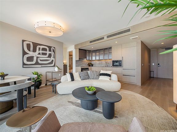 This attractive, upgraded, fully furnished Koula condo offers one bedroom, one bath, and one assigned parking space with an EV charger. Features include motorized drapes, designer wallpaper, and custom built-ins. Enjoy high-end Miele appliances, a modern aesthetic, and access to resort-style amenities. Located in the award-winning Ward Village development, this condo offers convenient access to beach parks, theaters, restaurants, and Ala Moana Center. The building features an open-air lobby, a park-like setting, and over an acre of outdoor amenities, including barbecue areas, a fitness center, and spa pools.