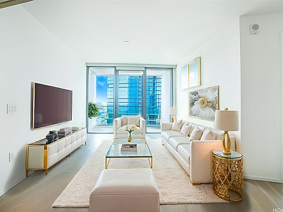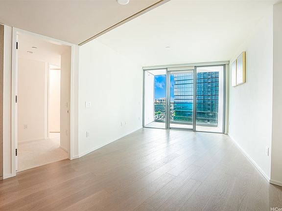 This rare residence blends modern elegance with island-inspired design by Studio Gang and interiors by Yabu Pushelberg. You can enjoy beautiful ocean, harbor, sunset, and a relaxing green park view from your private lanai. An expansive open-air lobby and resort-style amenities include a pool, Spa, BBQ cabanas, sunset lounge dining and bar, grand dining room, fitness center and more! Close to restaurants, Whole Foods, and Ala Moana Beach Park. Additional security provided by Ward Village courtesy patrols. Extraordinary modern island living is waiting for you! One or more photos have been enhanced.