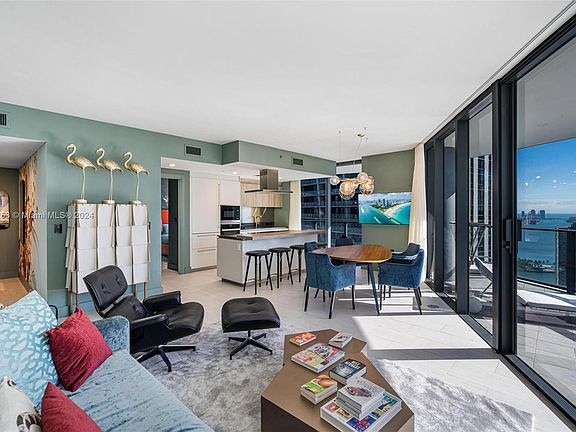 Stunning furnished turnkey corner residence located in the highly sought-after Brickell Flatiron building in the heart of Brickell. This 2 bed, 2.5 bath unit boasts floor-to-ceiling windows throughout with an oversized wraparound terrace providing picturesque skyline & water views. The chef's kitchen has top-of-the-line Miele appliances with an oversized island and separate dining area. The expansive primary suite has double closets, a spa-like bathroom with separate tub and shower, and a private terrace. Secondary bedroom has en-suite bathroom, large walk-in closet, and terrace access. Centrally located just steps away from Mary Brickell Village, Brickell City Center, & the best fine-dining establishments in town. Come live in Brickell's finest tower!