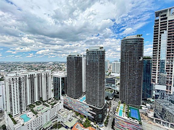 This Flatiron corner unit features large floor-to-ceiling sliding glass doors that open to wraparound balconies with views overlooking Brickell, downtown Miami, and the ocean. Unit amenities include high-end Miele appliances, bedrooms with custom closets and a master bathroom with a luxurious shower and bathtub with views of Brickell. Building amenities include a rooftop pool and spa, with 360 views, and a fitness center complete with steam rooms and locker facilities. A lap pool is located on the 18th floor, along with a movie theater, a child's playroom, and a social lounge. Flatiron sits in the heart of Brickell and is very close to Brickell City Centre, high-end retail, and fine dining. A quick drive to I95 allows easy access to Miami Beach and other surrounding areas.