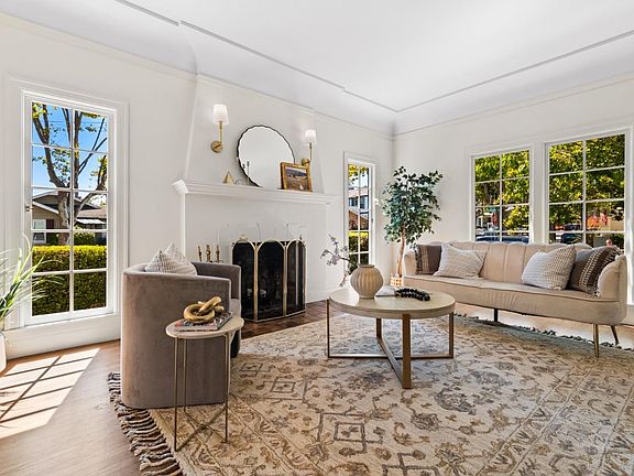 Just two blocks from Broadway in sought-after Burlingame Terrace, this vintage property offers timeless character and modern potential. The circa 1926 gem is located on a newly landscaped corner lot framed by boxwood hedges on a sidewalk-lined street. Freshly painted inside and out with preserved heritage details like tall baseboards, coved ceilings with crown moldings, and glass doorknobs. A traditional foyer leads to the formal living room with fireplace. The formal dining room with chandelier connects to the kitchen through true divided light doors plus there is a sunny breakfast room. Upstairs are two bedrooms and a full bath with tile finishes. A lower-level includes a utility room with sink, a bonus bath with shower, plus attached 2-car garage with laundry. The garage also has access to a private side yard with expansive lawn and brick patio. Whether enjoying today or renovating for the future, this great location also benefits from access to top-rated Burlingame schools.