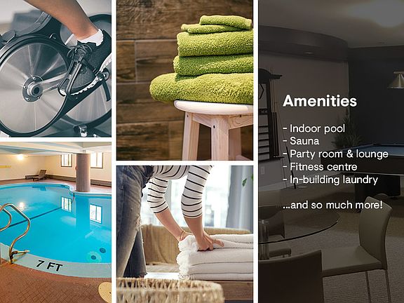 - Amenities: Take advantage of our upgraded indoor saltwater pool, fitness centre, sauna, outdoor BBQ area, and party room with a pool table, all designed to cater to your every need.
