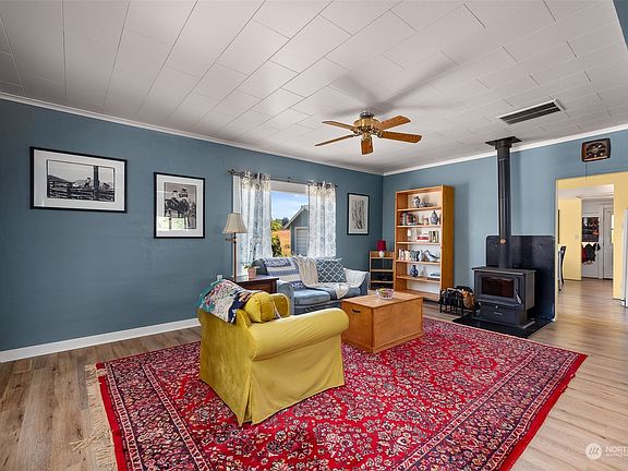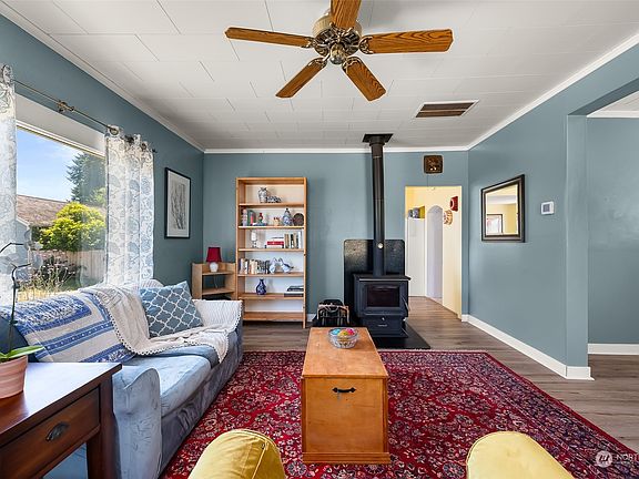 Great hunting and fishing near by! 3.25 acres, open floor plan of 1,128 sq ft living space and lots of natural light. New paint and living room floors. A wood stove or heat pump to keep you warm all winter and cool in the summer. Ample storage with the detached garage or utility room. The property also features multiple outbuildings including a smoke house, barn, woodshed and chicken coop. Fully fenced yard with mature trees, fruit & hazelnut, flowers, and garden space. Large field for livestock and horses. Lots of space to build your dream home!