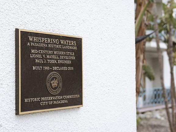 Step into Pasadena's midcentury design legacy at Whispering Waters, one of the city's first post-war luxury condominium complexes, designed and built by prolific post-war developer Lionel V. Mayell in 1960. A celebrated example of California Modernism, the building is recognized as a local architectural landmark and enjoys the benefit of the Mills Act, offering property tax savings* to its owners.Located less than a block from South Lake Avenue, this home places you in the heart of one of Pasadena's most vibrant neighborhoods. Outside your door you'll enjoy instant access to chic boutiques, popular cafes, fine dining, fitness studios, grocery stores, and everyday conveniences - all within easy reach. Whether you're meeting friends for brunch or happy hour, grabbing coffee before work, or browsing your favorite shops, living here means having Pasadena's premier shopping and dining corridor just steps away.In addition, you'll be just moments from Caltech's renowned campus, offering you a front-row seat to one of the world's leading centers of science, research, and innovation. Enjoy the serene, park-like beauty of the Caltech grounds, or take advantage of public lectures, performances, and community events that enrich the neighborhood's intellectual and cultural fabric. Whether you're affiliated with the university or simply appreciate its presence, living nearby adds a sense of prestige, tranquility, and inspiration to everyday life.This one bedroom first floor home remains in largely original condition, offering a rare opportunity for you to thoughtfully restore or update the space to your own tastes. Floor-to-ceiling glass sliding doors, a balcony that runs the full length of the unit, a bright & open-concept layout, and clean mid century lines provide a strong architectural foundation. The spacious bedroom includes a wall of closets and shelving, and the bathroom retains its vintage charm with a vanity, tub, and separate shower. There is also parking for one car and an additional storage locker.Monthly HOA dues are $522 and include water, community laundry, trash, and grounds maintenance. Also located just minutes from the Playhouse District, the Metro, Old Town Pasadena, and the Rosebowl Stadium, this architecturally significant home offers timeless design, a convenient location, and possible tax advantages - all in one of Pasadena's most desirable neighborhoods.*Buyer responsible for verifying any Mills Act property tax savings