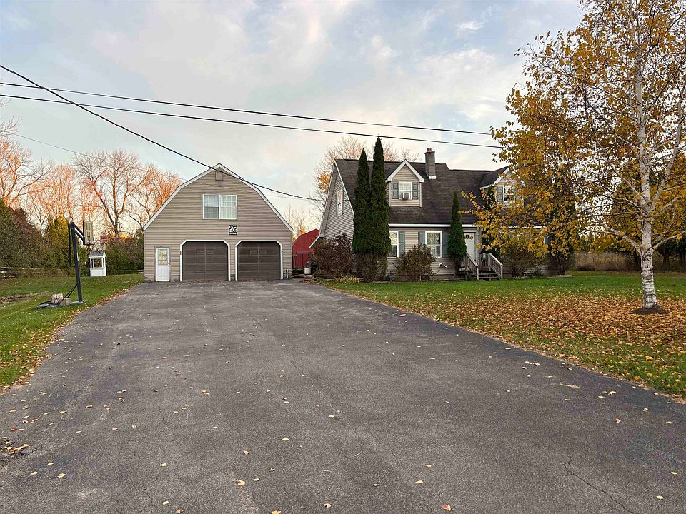 This Cape Cod style home offers 2,000 square feet of living space.  There are FOUR bedrooms and TWO bathrooms, with TWO bedrooms and a bathroom on the main floor.  The "country" kitchen features a center island, numerous cabinets, and plenty of counter space.  The appliances will convey.  Off the kitchen is a laundry room, plus another room that can be used as a den/office/pantry room, etc.  You will love the pellet stove in the living room for added warmth in the fall and winter evenings.   Upstairs are TWO more bedrooms and a bath.  The full basement provides two more finished rooms to use as you please.  The home is vinyl-sided and has updated vinyl replacement windows.  Outside, you will find a 3-stall barn with a hayloft that has electricity and water to it.  The large 2-car garage is insulated, heated with a pellet stove, and has a new metal roof that was installed last year.   Above the garage is a two-bedroom apartment with excellent rental income.  The driveway is paved 2 cars wide.  This home has all-electric baseboard heat and is in the Massena Electric District.  There is 1.2 acres of land.  Put this one at the top of your list and get in to see it today!