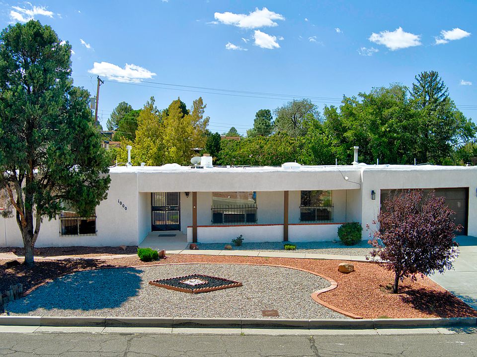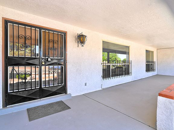 Bright and spacious home with a new TPO roof (transferable warranty), fresh carpet & paint, and abundant natural light. With 5 large bedrooms & 3 baths, this home offers a separate bedroom floor plan for flexibility & privacy. The large kitchen features an eat-in bar, double ovens, & ample storage, opening to the dining and living areas with a real wood-burning fireplace. Enjoy a heated sunroom for year-round enjoyment, an oversized front porch, a covered back patio, & low-maintenance yards. Additional features include a new heater, AC, & water heater, a dedicated laundry room with a stainless steel sink, & an attached garage. Just minutes from The Canyon Club with golf, tennis, swimming, & a full restaurant and bar, & close to Kirtland Air Force Base, shopping, & scenic hiking trails