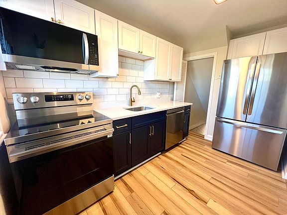The main level boasts a modern kitchen with quartz countertops and brand-new stainless-steel appliances, along with a large dining room and spacious living roomideal for both everyday living and entertaining. You'll find three generously sized bedrooms with ample closet space and a full bathroom on the upper level. The finished basement includes a versatile entertainment space perfect for a TV room, home office, or remote-work setup, a large utility room with abundant storage, and walk-out access to a ground-level patio.