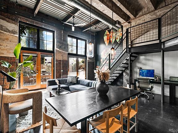 Contemporary, open, and spacious urban art loft right in the heart of uptown! Walk right into a gorgeous open floor plan with exposed brick, beams and oversized windows that create a beautiful and inviting living space perfect for relaxing, entertaining, and working. The main floor boasts a newly remodeled kitchen with all Bosch appliances and a custom-designed steel island fabricated by local Colorado artist, Patrick Marold. Contemporary meets elegance with the contrast of the large steel island with sleek white cabinets and a stunning range hood straight down from the ceiling. The kitchen overlooks an open floor plan perfect for entertaining with an expansive living room that opens up to a beautiful outdoor seating area. The loft also features a one-of-a-kind commissioned mural painted by renowned Denver artist Jaime Molina, whose work can be seen throughout Denver's RiNo Art District, inside top restaurants, city parks and in the Denver Art Museum. The newly remodeled bathroom features a luxurious shower with a deep soaking tub to unwind in. A custom designed vanity, credenza and large mirror offer generous storage and plenty of space, while the variable soft lighting gives the feeling of entering a luxurious private escape. The lofted bedroom has a great view of the downstairs space and is the perfect balance of cozy and open. Custom closets and storage cabinets are plentiful in this loft, a rare feature of loft-living that makes it move-in ready with room to grow. The remodel of the kitchen, bath, bathroom furniture, and lighting were done with Denver designer Lindsey Kruger.The HOA covers water, gas, trash, recycling, landscaping, snow removal and more. This urban loft is at the center of Denver's popular Uptown area, within walking distance to some of Denver's best restaurants, shops and bars, 2 dog parks and a quick trip up to all of the downtown fun!