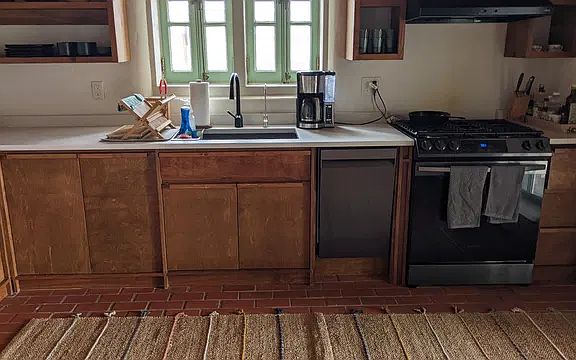 - Kitchen equipped for all cooking (and coffee!) needs, including dishwasher, gas stove and oven, fridge, and microwave