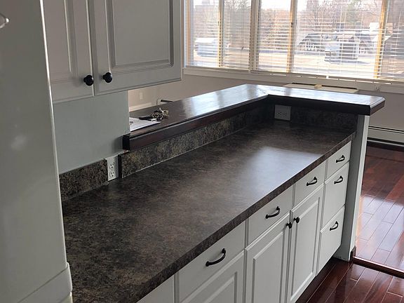 *Kitchen (white) with breakfast bar (includes Oven/Stove, Refrigerator, Microwave, new sink faucet, and a lot of counter and cupboard space.