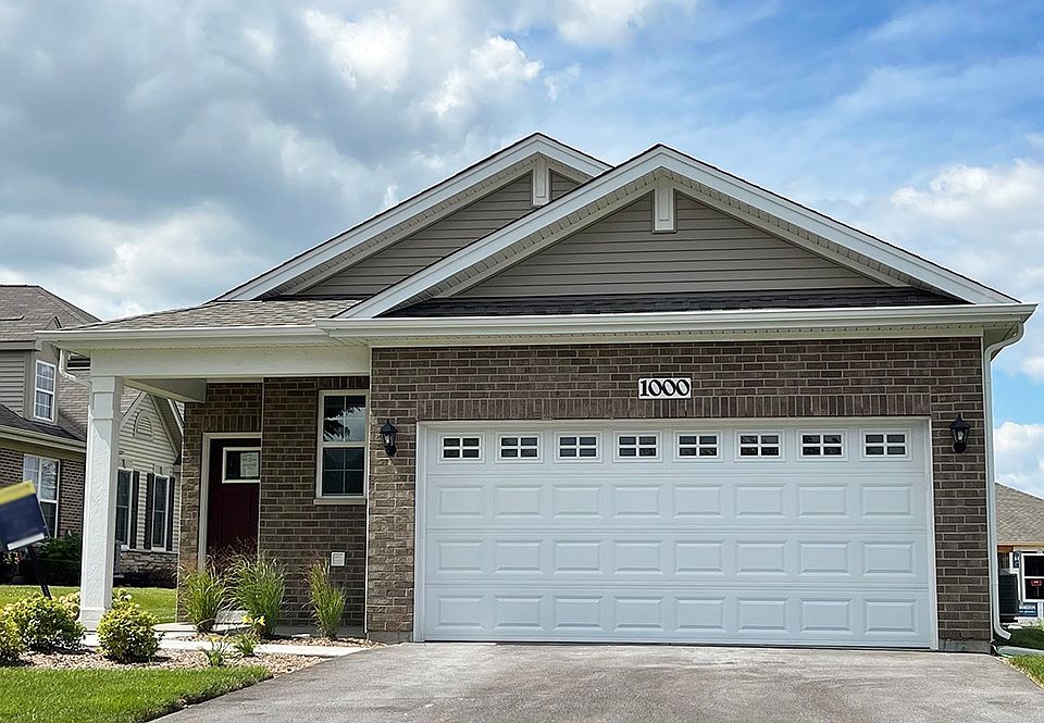 Envision yourself at 1000 Eineke Blvd in Algonquin, Illinois, a beautiful new ranch home in our Grand Reserve community. This ranch home is ready for a quick move-in! Homesite includes fully sodded yard and covered back patio. This Blake plan offers 1,459 square feet of living space with a flex room, 2 bedrooms, 2 baths, and 9-foot ceilings. Enjoy the Blake's open concept great room and kitchen. The kitchen layout includes a large island with an overhang for stools, 42-inch designer white cabinetry with crown molding and soft close drawers. Additionally, the kitchen features a pantry, modern stainless-steel appliances, quartz countertops, and easy-to-maintain luxury vinyl plank flooring. Enjoy your private getaway in the back of the home with your spacious primary bedroom and en suite bathroom. This deluxe bathroom includes a raised height dual sink, quartz top vanity, and walk-in seated shower with ceramic tile walls and clear glass shower doors. One additional bedroom, walk-in laundry room, and secondary full bath complete the rest of the home. Full of scenic nature trails, ponds, and wildlife, this sought after community is set in a premier location with access to I-90 and Route 62. Residents are only a few minutes from the Randall Road corridor for all shopping and dining needs. All Chicago homes include our America's Smart Home Technology, featuring a smart video doorbell, smart Honeywell thermostat, Amazon Echo Pop, smart door lock, Deako smart light switches and more. Exterior photo of actual home. interior photos are of similar home and model home. Actual home built may vary.