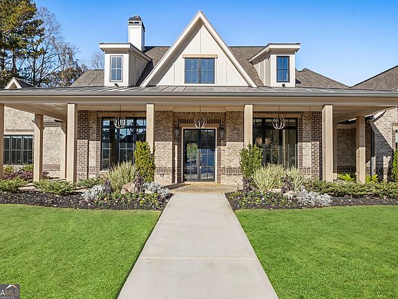 Discover exceptional new construction in Alpharetta's sought-after Cherokee County. A pair of brick columns with gas lanterns welcomes you into this beautifully crafted Craftsman-style home, built with premium materials, advanced technology, and meticulous attention to detail. The brick exterior, timeless architecture, and serene location offer the perfect blend of luxury and convenience, minutes from top-rated schools including Avery, Creekland, Creekview, and The Haven Academy. Inside, the home features top-of-the-line appliances, locally crafted custom cabinetry, stain-in-place hardwood flooring, high-performance concrete countertops with integrated sinks, designer fixtures, and extensive trim work. The primary suite includes heated tile floors and a beautifully designed custom closet. A true entertainer's dream, the 1,000 sq ft covered patio showcases herringbone brick detailing, built-in heaters, and a full outdoor kitchen with Wolf and Sub-Zero appliances. The backyard is approved for an inground pool. Additional highlights include smart-home control of HVAC, lighting, surround sound, and Lutron shades; prewired EV outlet; casement windows with extended warranties; and F-Wave synthetic shingles offering a lifetime warranty, Class 4 hail rating, and 130-mph wind resistance. This pre-planned community will feature seven luxury homes. Once all homes are built, homeowners have the option to add a Private Gate at the Entrance. Lots are not sold individually. Total area under roof, including porches and garage, is 6,434 sq ft.