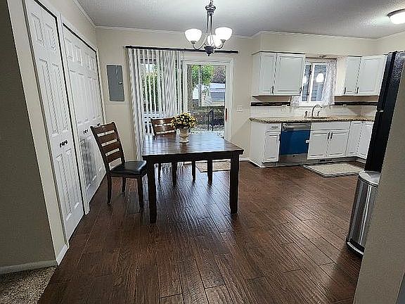 Large front yardFenced in backyardLarge backyard deckMaster bedroomLaundry closetSecond bedroomWood burning fireplace