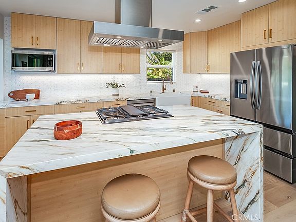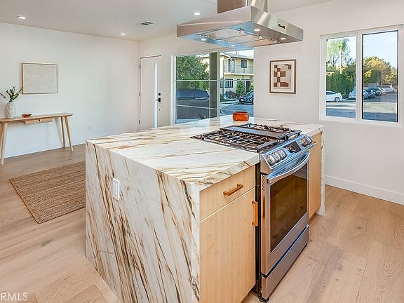 Remodeled (2024) Located in the highly sought-after community of Venice that is east of Lincoln. 1,452 sq. ft. with 3 bedrooms and 2 bathrooms. The following is ALL NEW - Exterior Smooth stucco, front door, door hardware, outdoor lighting, covered front porch, rain gutters, eco-friendly landscaping, decomposed granite and sprinkler system. Interior Freshly painted, smooth ceilings, dual pane windows, LED recessed lights, wood slat doors, wood door jambs, Champagne Bronze door hardware, Decora light switches on dimmers, outlets, base moldings, European White Oak wide plank hardwood floors, porcelain tile floors, tankless water heater, HVAC system and Nest® thermostat. Family Room Ozarke® acoustic wood wall slat panels and swing-out folding glass panel patio doors. Smart Kitchen European wood cabinetry with Bamboo finish, Champagne Bronze hardware, soft/self-closing door/drawers, 4-layer Marmi Calacatta Macchia Oro Vecchia Gold Vein marble counter tops, custom starburst inspired porcelain tile backsplash, under cabinet lighting, farmhouse basin, Champagne Bronze pull-down faucet, Samsung® stainless steel 5-burner gas range (Smart Things), ceiling mount island ventilation hood, Samsung® French door stainless steel refrigerator/freezer (Smart Things), Samsung® stainless steel dishwasher (Smart Things), LG® stainless steel microwave oven and center island breakfast bar with 4-layer Marmi Calacatta Macchia Oro Vecchia Gold Vein waterfall marble counter top. Primary Suite: Expansive walk-in closet with organizers and acoustic wood slat wardrobe door. En Suite Primary Bathroom: Oak vanity, Champagne Bronze hardware and fixtures, 4-layer Marmi Calacatta Macchia Oro Vecchia Gold Vein marble counter tops, dual undermount basins, designer lighting, frameless glass enclosed step-in shower/custom tiled with a ribbed tile accent wall, freestanding bathtub and Washlet® remote controlled commode. Guest Bathroom: Oak vanity, Champagne Bronze hardware and fixtures, 4-layer Marmi Calacatta Macchia Oro Vecchia Gold Vein marble counter tops, undermount basin, designer lighting, frameless glass enclosed step-in shower/custom white wave porcelain tile walls and herringbone shower floor. Hallway Linen and Laundry closets (Includes stackable washer/dryer). Private Back Yard: New turf/plants and TimberTech® patio decking. Detached 2-Car Garage: Entry gate with black privacy glass, black aluminum and glass garage door, garage door opener, garage door keypad and 220v for EV charging.