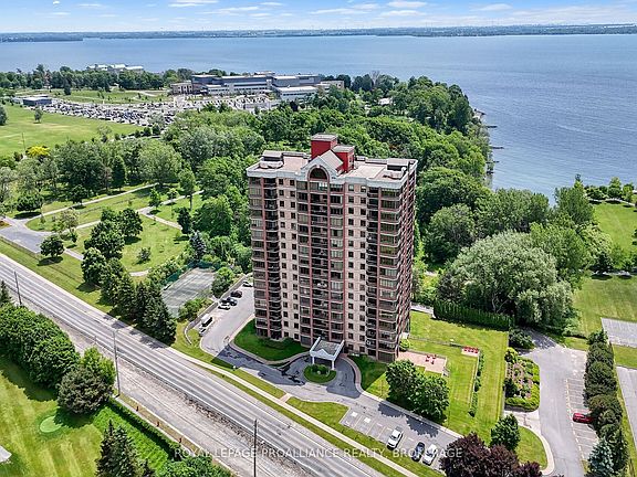 Welcome to #1201-1000 King Street West, a fabulous 12th - floor corner unit offering expansive, unobstructed views of the Cataraqui Golf Course, Lake Ontario, and beyond. Situated on the sought-after Northwest side of this prestigious high - rise, this bright and spacious two-bedroom, two-bathroom condo is full of potential and ready for your personal touches. The thoughtfully designed layout features a generous kitchen that opens onto the main living space, where you will find dual balconies - facing both west and north - perfect for enjoying sunsets and the serene landscape. Featuring in suite laundry and separate dining room - this unit provides a welcoming sense of space, natural light, and privacy. Located in the desirable Fairway Hills neighbourhood, just steps from historic Portsmouth Village, this well-maintained 94-unit building combines executive and luxury features with the charm of Kingston's scenic surroundings. Youll enjoy easy access to downtown Kingston, local shops, parks, hospitals, and waterfront trails - all while being connected via public transit right outside your door. Building amenities include Secure underground parking with a car wash bay, Ample visitor parking, Indoor pool, Jacuzzi, Sauna, fully equipped Fitness Centre, tennis/pickle ball court, Games room, Library, and Garden Centre, beautifully landscaped outdoor gardens with streams and sitting areas, Guest suite, common room with kitchen, and lovely patios for social gatherings. With a welcoming community atmosphere and a wide variety of resident activities and gatherings, this property offers the perfect blend of urban convenience and natural beauty. Don't miss the opportunity to make this exceptional condo your own.