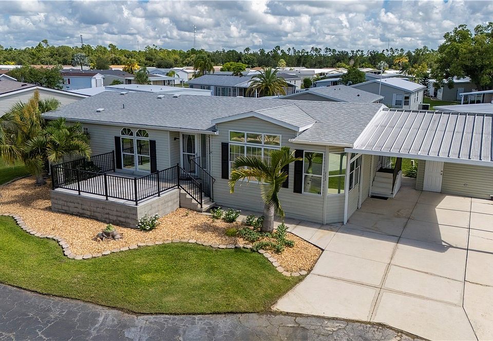 Port Charlotte Village was Voted #1 Manufactured Home Community in Charlotte County for 2024! NOT IN A FLOOD ZONE , No Damage from Hurricane Milton ? Welcome to this beautiful 3-bedroom, 2-bathroom home in a sought-after 55+ community with a low HOA. From the moment you walk in, you'll be captivated by the open floor plan, perfect for modern living. The spacious kitchen overlooks the living room and is an entertainer’s dream, featuring brand-new appliances, granite countertops, and new cabinets. Enjoy breathtaking lake views from both the kitchen and living room while preparing meals. The home features a blend of tile and luxury vinyl flooring, adding elegance and durability throughout. The spacious bedrooms provide comfort and privacy, with the primary bathroom boasting a large step-in shower and the guest bath featuring a therapeutic jetted step-in tub for ultimate relaxation. Step outside to a tall front patio with a stunning lake view, complemented by a beautiful cast iron railing, perfect for unwinding and enjoying the peaceful surroundings. This home has been meticulously maintained with significant updates, including a complete HVAC system installed in 2022 and serviced in March 2025, a roof installed in March 2021, and a water heater installed in 2021. Additionally, the vapor barrier and tie-downs were inspected in May 2023, ensuring the home is well-kept and secure. Located just 100 yards from the community’s top amenities, residents can enjoy a swimming pool, bocce ball courts, shuffleboard courts, a rec hall, post office, and a dog park, offering both convenience and an active lifestyle. Don't miss this opportunity to own a move-in-ready home in one of the best communities around. Schedule your private showing today!