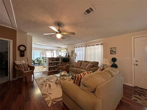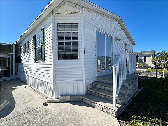 Port Charlotte Village is Charlotte Counties #1 rated Manufactured home community for 2024! This well-maintained 3/2 home has been well maintained and sits right in the heart of this lovely 55+ community. Upon entering the home, you will notice an open floor plan and a charming layout with stylish vinyl flooring. The kitchen features plenty of space, and is outfitted with solid surface countertops, stainless-steel appliances, updated cabinetry, tile flooring and has an attached dinette. The primary bedroom is quite large and has a walk-in closet to match its size. The primary bathroom boasts a double sink vanity and a walk-in shower. Guest bedrooms have plenty of space. Other features include in-house laundry room, front lanai with storage shed and reverse osmosis. $290 HOA fee covers many amenities including but not limited to clubhouse, heated pool, maintaining of the grounds, private road, library, billiards, bocce ball, water, sewer, trash and more. Golf carts are welcomed! Breathtaking views of the serene lake and park benches. Port Charlotte Village is unique with its winding tree-lined streets and cul-de-sacs. Many areas have benches for your convenience. Every home is attractively landscaped, giving the impression that every home is a model. On the left at the front entrance is a landscaped park with a gazebo and benches, a quiet resting place. Close to I-75 for easy travel. Close to grocery stores, restaurant's, medical facilities and more all within 5 minutes from your new home. Call your agent today for a showing or more details! We are offering a $10,000 credit you can use for a new carport or closing costs - take your pick! You won't want to miss this one. ***SOME PHOTOS WILL SHOW EXTERIOR FURNITURE - SELLER IS A SNOWBIRD AND STORES EXTERIOR FURNITURE INSIDE WHILE THEY ARE UP NORTH***