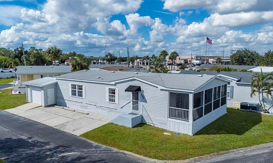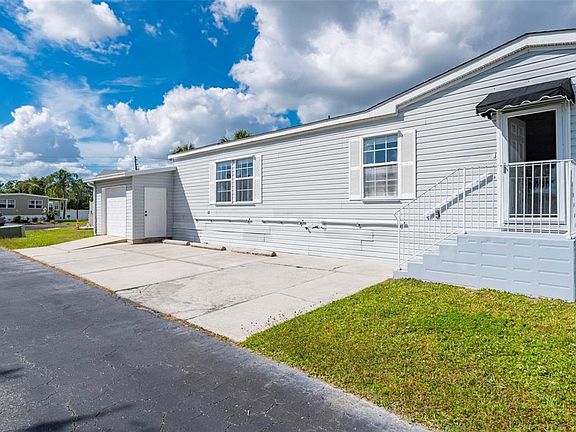 Port Charlotte Village – Voted #1 Manufactured Home Community in 2024! Not in a Flood Zone. Stunning 3-bedroom, 2-bath updated manufactured home with 1,643 sq. ft. under air, being sold turnkey in a highly sought-after 55+ co-op community with a low HOA. This move-in-ready home is packed with modern upgrades, including a dry-in roof roof over replaced in 2019 with Peel & Seal rubber as a secondary water barrier, a complete HVAC system installed in 2023, and new luxury waterproof vinyl flooring (2024) featuring ceramic finish high end LVP, scratch- and slip-resistant, and antimicrobial protection. From the moment you arrive, you’ll appreciate the ample 4-car side parking plus a 1-car garage with extra space for a workshop or storage area, a rare find in this community. Inside, the home features a bright, open floor plan perfect for comfort and entertaining. The spacious kitchen is a true centerpiece with an oversized butcher block island, solid wood cabinets, and ample counter space, offering a full view of the living room, dining area, and front screened-in lanai. The lanai provides a peaceful retreat to enjoy morning coffee or unwind in the evening while taking in the quiet surroundings. The large living room is filled with natural light, creating a warm, inviting atmosphere. The primary suite is exceptionally spacious and includes a massive 14.5’ x 5.5’ walk-in closet along with a beautifully updated bathroom featuring a tiled walk-in shower with sliding glass doors. Both guest bedrooms are generous in size with large closets, perfect for family or guests. Additional highlights include double-pane windows throughout for sound reduction and energy efficiency, wide entry stairs on both sides of the home, a wide hallway for accessibility, and smoke detectors replaced in March 2025. Every detail has been thoughtfully designed to provide style, comfort, and convenience. This home offers the perfect combination of modern upgrades, spacious living, and a relaxed Florida lifestyle in a well-maintained community close to shopping, restaurants, entertainment, and beautiful Gulf beaches. Turnkey and move-in ready, this home truly has it all and won’t last long!