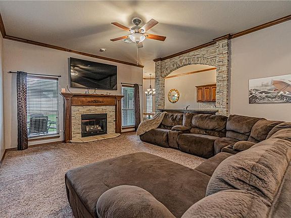 Amazing home in the Rock Creek community in Moore! 3 Bed. 2 Bath. STUDY with gorgeous built-ins. 3 car garage with an in-ground storm shelter. The covered front porch welcomes you in to a grand living space with a gas fireplace and a stone feature wall that opens up into the kitchen. The split floor plan gives everyone their own space. The master bedroom features a NEW walk-in shower. Rock Creek is a desirable community in Moore with plenty amenities to enjoy including a community pool, park, and rec center. You don't want to miss this!