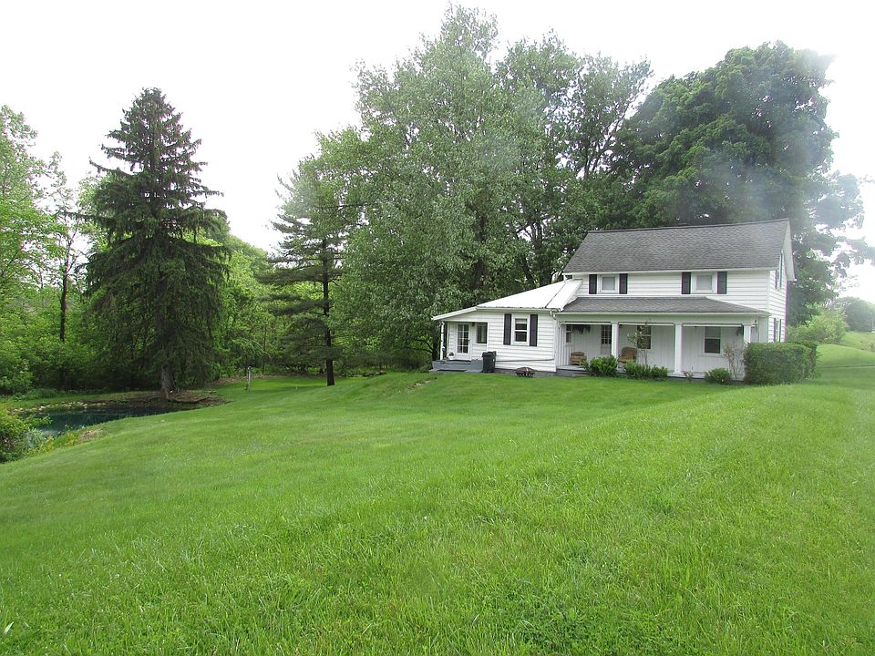 Open House CANCELLED  .Lovely well maintained older farmhouse with large Kitchen with ample counter and cupboard space with breakfast bar open to the sun porch. All Kitchen appliances remain. The Sunporch overlooks lush rear yard and pond.  Hardwood flooring in the living room and sitting room on the main floor.  Large full bath on the main floor.  Upstairs are 2 good size bedrooms with hardwood flooring and large closet spaces.  There is a 1/2 bath in the basement along with the washer and dryer hookups.  The detached barn is 20 x 42 with an upstairs loft with electric , perfect for studio space or extra storage.   Gas Furnace and Heat Pump  2010, Basement French drain 2011, Water Heater 2012.  Some fresh paint.  Ready for you to move right into and enjoy!