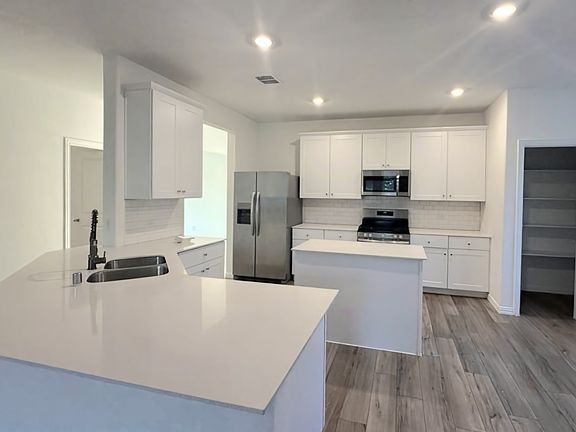 Welcome to this New Home, that has been lived-in 1 year. Built in 2024 in a corner lot in cypress creek community with 4 bed, 2 bath incl. Washer & Dryer/Refrigerator and including ring front doorbell with internet Wi-Fi connection. This home is perfect for a growing family. Stunning single story with a floorplan that you will love! Beautiful kitchen has that decent size island, SS appliances, gas range, quartz counters and super cabinet space! There is formal dining room for a large dining table. The flex space in the front would make a great office, sitting or play area. The primary bedroom is in the rear of the home overlooking your side-yard. Private bathroom features double vanity, shower and a huge closet with a door. Covered patio. Neighborhood has community pool, club house and playground. All sorts of shopping and restaurants close by. Easy access to 380 & other major freeways, shopping, restaurants and Walmart which means more time at home.