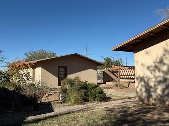 Do not be fooled when passing by this property! The two additional buildings are not storage sheds! The possibilities are endless with this property! Purchased years ago by an artist/architect, a large formal art studio (appx 816ft) was erected behind the main dwelling, with elements of light and position at the forefront for him to work. Equipped with proper storage shelving for art supplies, a wall of built-in bookshelves, refrigerated a/c, a .75 bathroom and kitchenette. Windowed French-doors overlook the courtyard that was built to take moments away from creating, and enjoy the greenery that once existed, and with patience, can once again be created! The studio could alternatively be used as extra space for visiting friends and relatives. Electricity was installed throughout the grounds of the double lot to four stations where antique lighting once stood. They have since been removed, and the power sources protected from the elements to once again be utilized in a number of different ways - outdoor kitchen perhaps? An oversized (appx 760ft) double garage was built with electricity for yard, vehicles and other home projects, and comes with a workbench, storage, extra space for other workshop activities. More space is available on the double lot for growth of the main dwelling, an outdoor kitchen, the building of a small apartment for rental income - options, options, options! The property is fenced for added security. The main dwelling has 2 bedrooms and 1 full bathroom. Separate laundry room with new washer and dryer that were used only about 3 times. The eat-in kitchen has plenty of natural light with two windows and an exterior door. The home itself is quaint and though dated, quite charming. It is ready to be personalized to your own tastes and preferences.