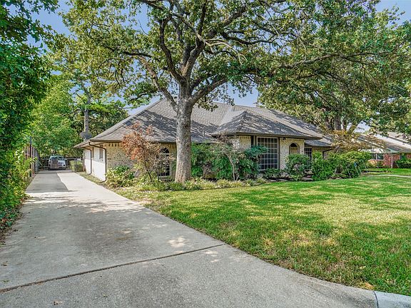 Welcome to this beautifully updated 4-bedroom, 3-bath home sitting in the highly desirable Southridge neighborhood of Denton. With its German-smeared brick exterior, mature trees, and inviting curb appeal, this home blends timeless character with modern comfort. Inside, you’ll find warm finishes and thoughtful details throughout. The spacious living room boasts vaulted ceilings with a wood beam, a brick fireplace, and a built-in wet bar perfect for entertaining. A formal dining room sits just off the entry, while the updated kitchen offers granite countertops, custom cabinetry, a farmhouse sink, and gas cooktop with brick backsplash. The primary suite provides a private retreat with tray ceilings, plantation shutters, and a spa-inspired bath. Secondary bedrooms also feature plantation shutters, offering both style and energy efficiency. With four bedrooms and multiple living areas, there’s plenty of space for family, guests, or a home office. Step outside to the large backyard oasis, where a covered pergola with built-in grill sets the stage for outdoor living. Enjoy the shade and privacy of mature trees, along with a Tuff Shed and additional exterior storage—perfect for tools, hobbies, or yard equipment. Additional highlights include updated lighting, plantation shutters throughout, a spacious laundry room, and an attached two-car garage. Conveniently located near schools, shopping, and all the amenities Denton has to offer, this Southridge gem combines charm, function, and a fantastic setting.