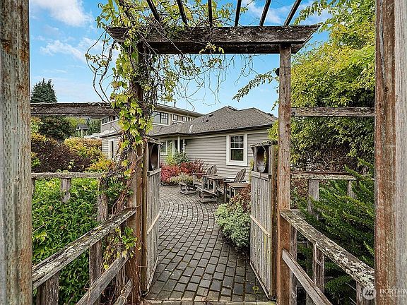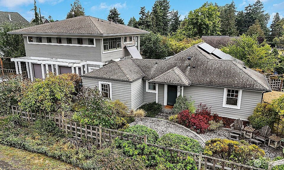 The best of Port Townsend's locations. A block from Chetzemoka Park and the beach, close to the Uptown business district, Farmer's market and the center of the universe. This beautifully landscaped corner lot is a quarter acre; a rare find in the city. A garden lover's delight with fruit trees, raised beds with irrigation, plus a green house. Room for a large outdoor entertaining area! Enter through a sunny courtyard into this 1940's charmer which has been completely updated with open kitchen to a dining area and living room. 2 comfortable bedrooms and 1.25 baths in the main house, and a newer addition with a fabulous ADU(view!), above the double car garage. Use the ADU as a primary bedroom or office or rental. A magical place to call home!