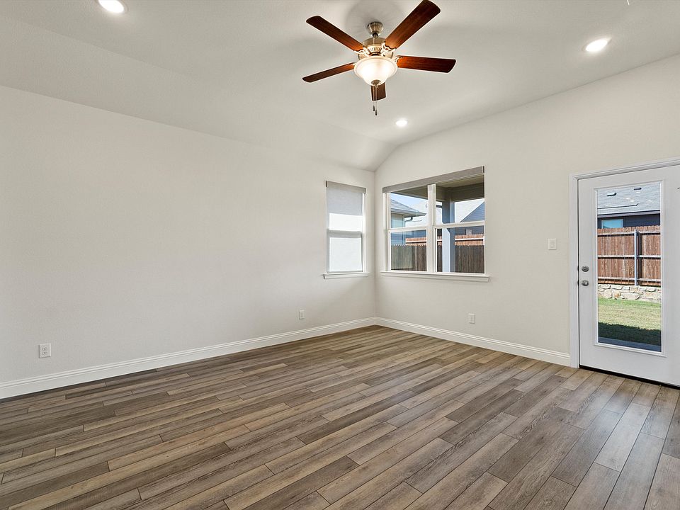 Beautiful corner lot located in Aubrey Creek Estates. This house has 3 beds and 2 full baths. Enjoy this open concept house, with a granite kitchen island, stainless steel appliances, a walk-in pantry, glass cooktop. The living room area has electric blinds and intelligent control for lights. It faces a big backyard with a covered patio, which is great for entertaining your family and friends. The primary bath comes with a double-size shower and a closet for linens. All bedrooms come with blackout blinds. House is located within walking distance of the community pool, which offers a barbecue-grill area. Pest control will be included. The garage has a security key box. The sprinkler system has already been set up. Close to coffee shops, grocery stores, restaurants, and more.