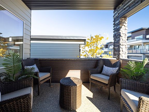 Beautifully finished and move-in ready, this stunning home offers over 2,400 sq ft of thoughtfully designed living space with quality upgrades throughout. The open-concept main floor features a dramatic floor-to-ceiling tile fireplace and panoramic mountain views with a peek-a-boo lake view from the living room balcony, which also has a gas hookup for your barbecue. The kitchen showcases extended upper cabinets, a subway tile backsplash, quartz countertops, stainless steel KitchenAid appliances, and a large island with a double sink and breakfast bar. Thoughtful touches include a walk-in pantry, a welcoming foyer, and a well sized dining area off the kitchen for easy hosting. The primary suite offers a generous walk-in closet and a luxurious 5-pc ensuite with a glass shower and soaker tub. The laundry room includes custom cabinetry and shelving, and the powder room features quartz counters.