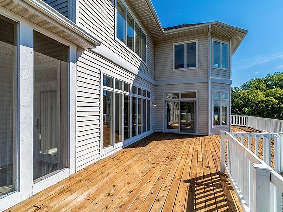 Nestled in a sought-after neighborhood, this exceptional two-story home with a full walkout basement offers the perfect blend of luxury, comfort, and functionality. Boasting 5 spacious bedrooms, 3 full bathrooms, and 2 half baths, this residence is designed to accommodate both everyday living and grand entertaining. Step into the chef’s kitchen, a culinary dream featuring custom cabinetry, a center island with a second sink, breakfast bar, JennAir cooktop, built-in convection oven, and abundant storage. The cozy breakfast nook is ideal for morning coffee with serene lake views. The dining room impresses with a gas log fireplace, built-in shelving, and seamless access to the screened porch and expansive deck. The foyer entry opens dramatically to the second level, while the living room showcases a bay window framing breathtaking views. On the main floor, you'll find a private office with two built-in desks, custom cabinetry, shelving, a closet and new carpet. The entire main level features brand-new luxury vinyl plank flooring for a sleek, modern touch. Upstairs, the primary suite is a true retreat with a two-way fireplace, private deck, oversized walk-in closet with organizers, twin vanities, jetted tub, and a separate shower. Three additional bedrooms, a full bath, half bath, and laundry closet complete the upper level. The walkout lower level is an entertainer’s paradise with a family room, rec room, wet bar, and direct access to the backyard patio and heated inground pool with motorized cover. A versatile bedroom with pocket doors can be divided into two sleeping areas and includes three closets. A full bath, mechanical room, and a 9'x6' safe room round out the basement. Additional highlights include: Attached two-car garage, 24x30 detached garage with finished studio and walk-up floored attic storage, New roof (2023), Two new furnace and A/C units (2024). Includes lots 13 and 14 in Foxfire Subdivision.