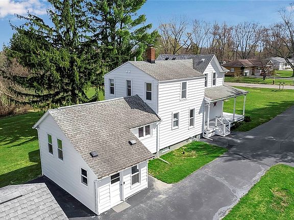 Completely Renovated Classic Farmhouse in Elma! Step into timeless charm blended with modern convenience in this beautifully renovated 3-bedroom, 2.5-bath farmhouse. From top to bottom, this home has been thoughtfully updated while preserving its classic appeal. Enjoy relaxing evenings on the brand-new covered front porch, or entertain with ease in the stunning kitchen—complete with a Butcher Block central island, Quartz countertops, and it includes new appliances. Inside, you'll find original refinished hardwood floors, new thermopane windows, and a professionally updated layout with spacious living area, a formal dining room and the beautiful kitchen. Additionally there is upgraded insulation, new electrical, central A/C, and a high-efficiency furnace. Each bathroom has been fully remodeled, and a convenient laundry area is tucked into the spacious, well-maintained basement, offering plenty of storage. Outside, the large yard is perfect for outdoor fun, and the oversized detached garage—added roughly 10 years ago—provides space for 2+ cars and all your gear. Ideally located just minutes from East Aurora, Knox Farm State Park, and Sahlen's Sports Park, this home offers country charm with easy access to everything you need. Low Elma taxes and move-in ready—don’t miss this rare find!