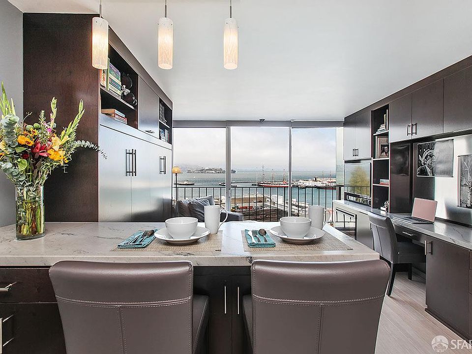 Welcome to the Fontana Towers East, one of SF's most iconic Doorman buildings in the heart of Russian Hill. This thoughtfully designed Remodel with dazzling Bay & Alcatraz views, is ready for move in! High-end finishes include custom cabinetry & unusually large amount of storage space within the unit, bamboo floors, quartzite countertops and contemporary electric fireplace. Queen-size Murphy Bed stores away easily to maximize the living space. Other features include: 24-Hour Doorman/Security, 1 car parking, bike storage, priv storage room, Club Room, Zen garden with BBQ area. Unbeatable location close to some of SF's finest restaurants, shopping and cafes. HOA includes electricity, heat, sewer, trash, water, cable, common area maintenance, Doorman and onsite management. Whether your full-time residence or stylish City pied-a-terre, this is a lovely place to call home!