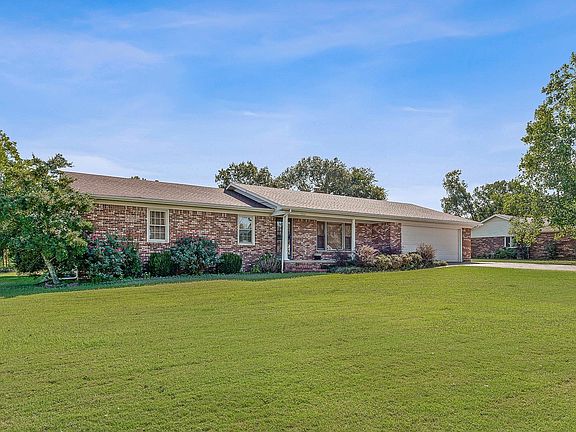 Enjoy the feel of country living right inside the city limits! This charming ranch-style home sits on .58 acre lot with mature landscaping and plenty of outdoor space. Inside, you'll find a large galley kitchen with a breakfast bar, perfect for casual dining and entertaining. The large living area features a beautiful fireplace with a wood-burning insert for those cool evenings. Step outside to a covered back deck overlooking a peaceful backyard complete with a relaxing water feature. A large workshop provides plenty of space for hobbies, storage, or projects. The workshop also has a bay for yard maintenance equipment. At one time water lines were run to the shop and could be easily reconnected. Conveniently located and just minutes from NEA Baptist Hospital, shopping, and restaurants.
