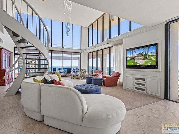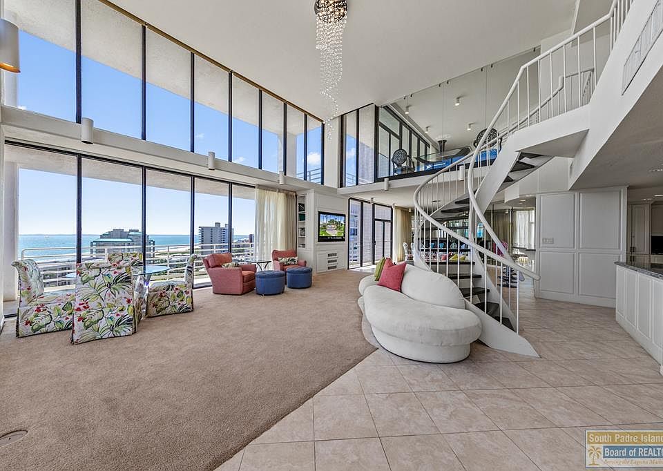 Nothing quite like it on SPI! Originally on the market at $2,250,000; now priced to sell! Over 3800 sq ft under glass and 3800 sq ft of private outdoor living space with lock-off elevator access. With stunning panoramic views of the entire island and the Gulf of America, you can see the sunrise or sunset from virtually every wall of every room and from two large private sundecks and multiple balconies. It also has perfect fireworks views no matter where they appear on the island and even a glimpse of SpaceEx. Designed on two levels in a landmark building on South Padre Island with all the amenities, the Penthouse is professionally decorated with a spacious living room with a custom-made sofa that wraps around the spiral staircase and a grand piano. There are multiple dining areas inside and out with a lucite and glass dining table inside and a built in grill outside. Three master suites each have ensuite baths and a private sundeck or balcony. Bring all reasonable offers!