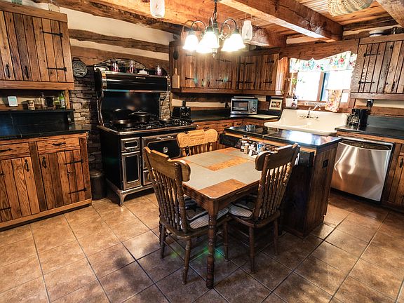 Restored 19th Century Log Home(s) situated on 12 acres joining the Jackson River! The main house features 2 bedrooms, 2 baths, living room, kitchen, laundry room, and loft. The kitchen features soapstone countertops, custom American chestnut cabinetry, antique porcelain sink, refrigerator, dishwasher and Heartland gas stove. The zoned radiant floor heating throughout is supplied by an outdoor wood stove and propane backup. Along with the main home, this property also has an 800 sq.ft 1 bedroom, 1 bath log guest cabin & additional 1 room log studio! Two garages include a 2 bay 40x50 with car lift, and a heated 40x40 garage. Contact Magnolia Perdue to schedule a showing!