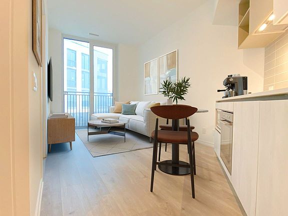 Floor-to-ceiling windowsModern kitchenBuilt-in appliancesSleek finishesLaminate flooringSpacious primary bedroomDouble closet