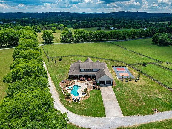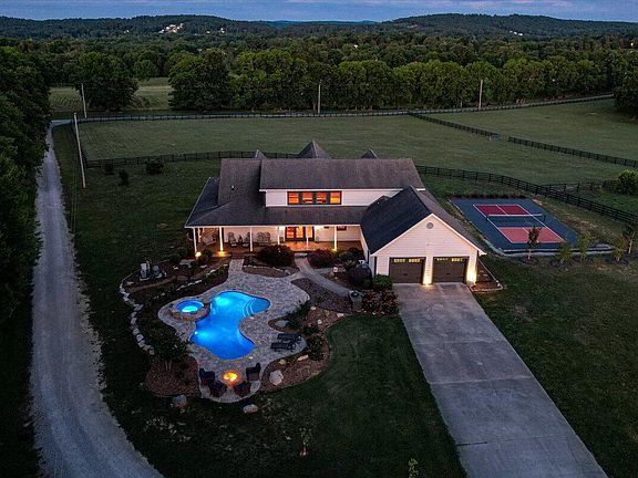 Custom built home on 12.7 acres with resort style pool, pickle ball court, and barn with two fenced pastures ready for your horses! Hidden from the main road, this home enjoys incredible private views of the property and lake from the wrap around front porch. Inside you'll find an open floor plan with soaring ceilings, stone fireplace and beautiful kitchen. The master suite is on the main level and features access to the porch, en suite bathroom with freestanding tub, tile shower and large walk-in closet. Two more bedrooms are on the main level, one of which features an upstairs loft that could easily be converted into a 4th bedroom, and a 5th bedroom could also be added. The gunite pool, built-in hot tub and fire pit enjoy gorgeous views of the property and lake, while the pickle ball court is just off the porch which is the perfect spot for spectators. The barn features 4 stalls, tack room and office plus a loft with roughly 7 acres currently fenced in. All of this zoned for Heritage schools with easy access to Ringgold, Fort Oglethorpe and Chattanooga!