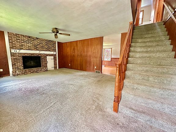New sump pump and pit added!!! Full of Charm, Space & Timeless Appeal Welcome to this well-built and maintained home that beautifully blends original character with a perfect layout. From the moment you enter, you'll notice the warmth and care that radiates throughout. The spacious living room welcomes you with a classic brick fireplace-perfect for cozy evenings. Just beyond, the formal dining room boasts hardwood floors and a lovely view of the serene backyard, ideal for gatherings and everyday enjoyment. The kitchen is an original gem, featuring original solid wood cabinetry and plenty of space to add your own touch while preserving its vintage charm. The main level also includes a generous bedroom with hardwood flooring and a handicap-accessible bathroom with a walk-in shower for added convenience. Upstairs, you'll fall in love with the pristine knotty pine walls & ceilings, and gleaming hardwood floors that create a warm and timeless ambiance. Two spacious bedrooms offer ample closet space and charming dormer nooks with attic access. An oversized full bath completes the second floor. The partially finished basement offers even more living space, including a cozy den with built-in bookshelves and a second wood-burning fireplace, a flexible-use room, and a large laundry/storage area. Outside, you'll find an established landscape bursting with perennial plants and flowers that offer beauty through the seasons. Enjoy the outdoors from the large covered porch tucked behind the attached carport, or take advantage of the second oversized carport at the rear of the yard-ideal for additional parking & projects. With durable aluminum siding, poured concrete basement walls, central heat and air, plus supplemental window units for upstairs comfort, this home is built to last and ready to welcome its next chapter. Selling As Is Where Is, and has been priced based on condition