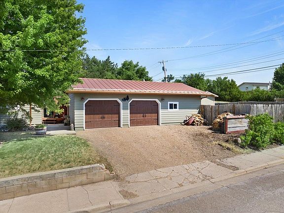 Welcome home, 3 bed, 2 bath, large double corner lot, with oversized two car garage is waiting for you. Immaculately cared for, with beautiful hard wood floors in Kitchen and dining room areas, open kitchen, plenty of cabinet space, with solid wood cabinets. Quality trim and interior door package, beautiful bay window in living room. Formal dining room could also be used as a 4th bedroom or office. From the dining room step out onto the large, covered patio into a back yard that feels like your own personal sanctuary with privacy fence and garden area. Oversized detached 2 car garage is heated with a wood stove. Home is also set up for central air, all duct work in place. Located just 2 blocks from Belle Fourche Rec Center, park and High school. Sold as is, where is.