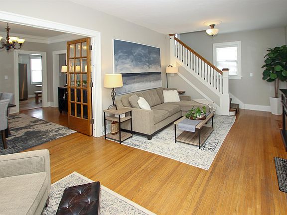Charming 1.5 story home welcomes family and guests with covered front porch. Convenient location to Downtown and McKennan Park. 2 bedrooms, 2 bathrooms and 1,285 square feet finished. Original hardwood flooring enhances living and formal dining rooms. Kitchen has new appliances, backsplash, banquet, and heated floors. Bathroom has a stylish claw foot tub, updated vanity, and heated flooring. Upper level offers 2 generous size bedrooms, both with walk-in closets. Lower level has new luxury vinyl plank flooring throughout den and finished laundry area. Updated lower-level bathroom with tiled shower. Attached storage area and one stall garage. Yard is ready for your garden parties with a large patio and fully fenced.