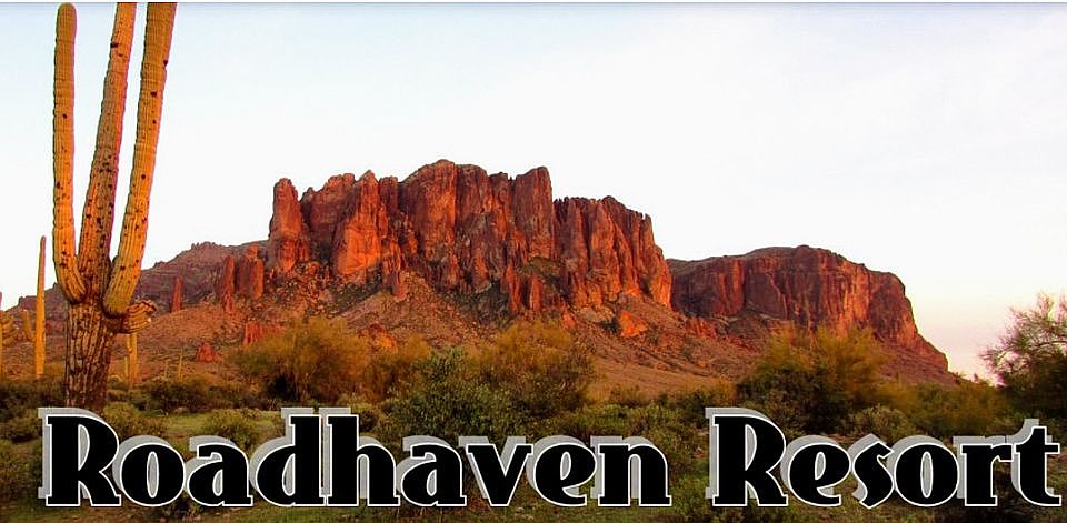 Own this little piece of heaven centrally located on a quiet street in Roadhaven 55+ RV Resort. This lot is just around the corner from main gate, main pool, tennis courts, Rec Hall and facilities. It is in walking distance to golf course, lap pool, fitness center and cantina. It boasts a large well-constructed metal awning, 6x8 storage shed and views of the majestic Superstition Mountain. Come enjoy the simple life and morning sun on your new patio. Owner Will Carry with good down payment. $45000.00 OBO